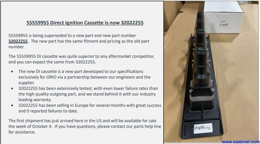 Note that it has been reported on the Saabnet 9-5 board that NGK/SEM has stopped manufacturing Saab DICs and Orio has found another supplier for "SAAB Original" units. So in the future we'll probably be seeing those for both T5 and T7 models. (The jury is still out as to how they'll perform and hold up vs. those manufactured by SEM.)